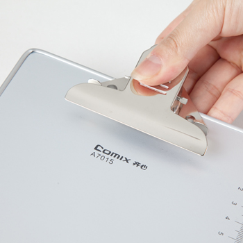 商品名称:齐心 A7015 高级铝合金蝴蝶夹 A5 商品编号:10119 基本单位:个 最小采购单位:中箱(1) 箱包装量:1