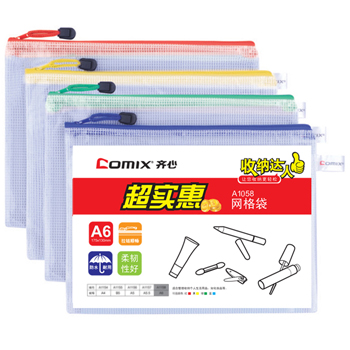 商品名称:齐心 A1058 经济型网格拉链袋 10PCS/套  A6 商品编号:10006 基本单位:套 最小采购单位:中箱(1) 箱包装量:1