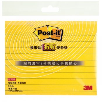 商品名称:3M 645SL 狠粘便条纸 5*4英寸 70页/本 带横线 黄 商品编号:120017 基本单位:本 最小采购单位:本(1) 箱包装量:1