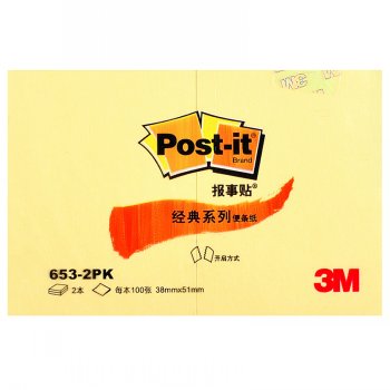 3M 653-2PK1 报事贴 1.5*2 100页/本 黄