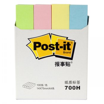 商品名称:3M 700H 彩色分页标签 14*75MM 100页 粉彩4色 商品编号:120095 基本单位:包 最小采购单位:包(1) 箱包装量:1