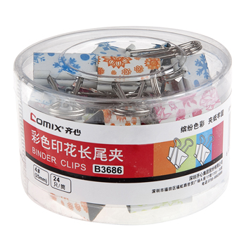 齐心 B3686 彩色印花长尾夹 4号