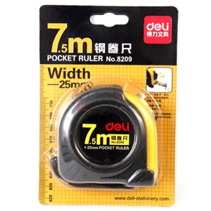 商品名称:得力 全包胶钢卷尺 16mm*7.5m 商品编号:220263 基本单位:把 最小采购单位:把(1) 箱包装量:1