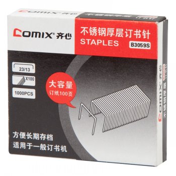 商品名称:齐心 B3059S 不锈钢厚层订书钉 23/13 商品编号:10344 基本单位:盒 最小采购单位:中箱(1) 箱包装量:1