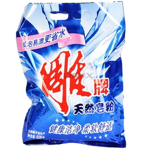 商品名称:雕牌 天然皂粉 家庭装 628g 商品编号:255006 基本单位:袋 最小采购单位:袋(1) 箱包装量:1