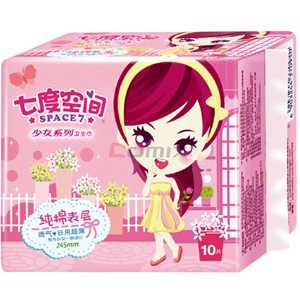 商品名称:七度空间 少女系列 纯棉表层超薄型卫生巾 日用245mm 10片装 商品编号:448001 基本单位:包 最小采购单位:包(1) 箱包装量:1