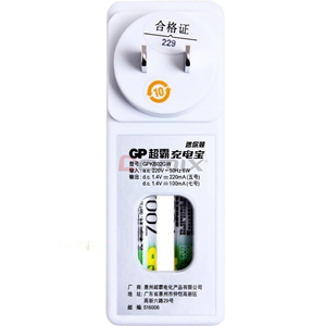 商品名称:超霸GP 迷你充电宝(附2节7号700毫安镍氢电池) 商品编号:147036 基本单位:套 最小采购单位:套(1) 箱包装量:1