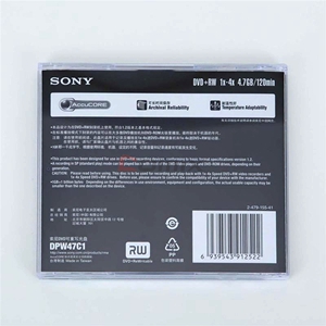 商品名称:索尼SONY DVD+RW 可擦写光盘 4.7GB 4X(单片装) 商品编号:357014 基本单位:片 最小采购单位:片(1) 箱包装量:1