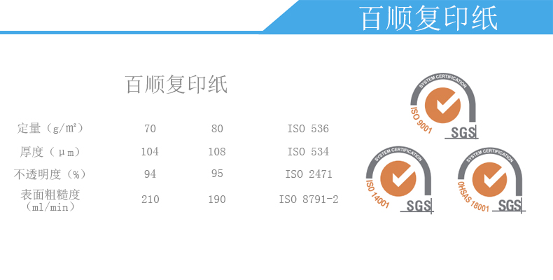 商品名称 : 百顺 70g A4 纯木浆高级复印纸